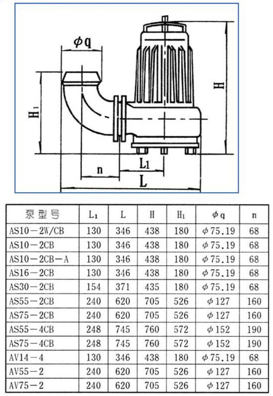六、AS、AV型系列潛水排污泵性能參數(shù)